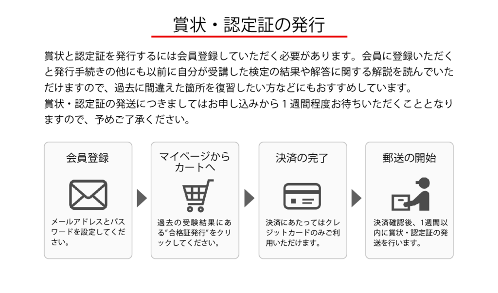 決済が終了するとマイページから電子合格証をご発行いただけるようになります。
